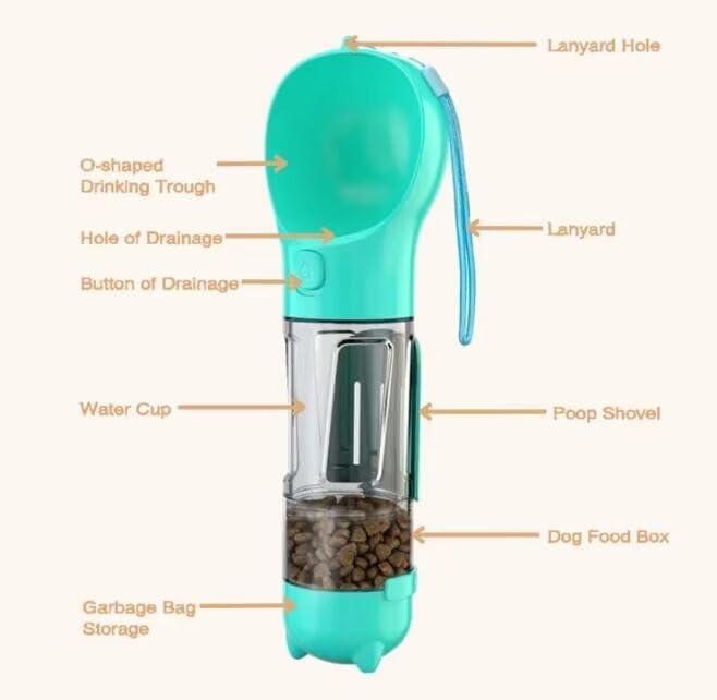 Keep your furry friend happy and hydrated, even while you're on the go, with our amazing new 4-in-1 Portable Dog Water Bottle,Feeder, Poop Bag Holder & Pooper Scooper.